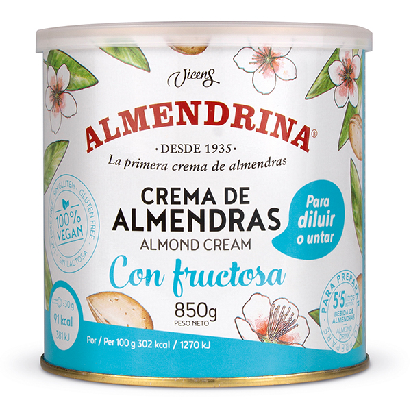 100% vegetal Agua, fructosa, almendra (20%), espesante: harina de garrofín, gelificante: pectina. Puede contener trazas de avellana