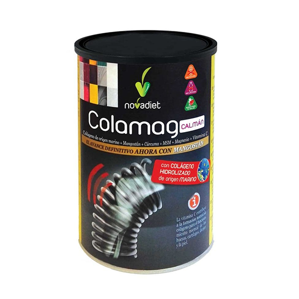 Colamag Calmán es un complemento alimenticio con Colágeno hidrolizado de origen marino para una mejor absorción, procedente de piel de pescado. La Vitamina C contribuye a la formación normal de colágeno para el funcionamiento normal de los huesos, cartílagos, dientes y piel, y el Magnesio contribuye al mantenimiento de los huesos y dientes en condiciones normales y al funcionamiento normal de los músculos. Completamos la fórmula con Mangostán Cúrcuma y MSM.