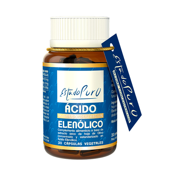 A diferencia de otros productos de hoja de Olivo que aportan activos como la oleuropeina o el hidroxitirosol, ESTADO PURO consigue un extracto que concentra el componente activo Ácido Elenólico, de estructura química y propiedades bien diferentes del resto de los activos presentes en la hoja de Olivo, y reforzado con Vitamina C, que contribuye al funcionamiento del Sistema Inmunitario.