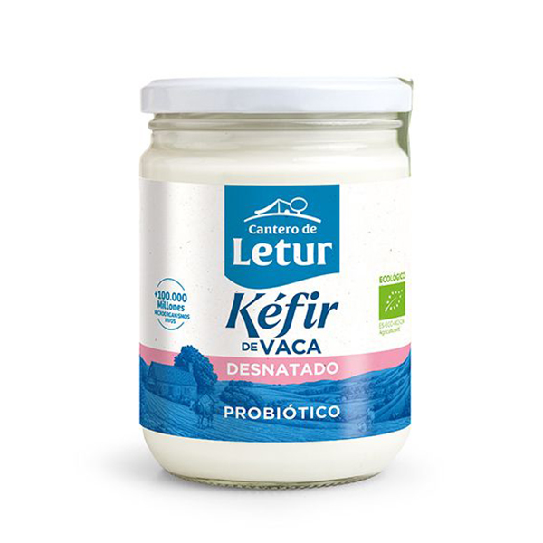 Leche desnatada de vaca pasteurizada* y fermentos lácticos de kéfir. (*) Ecológico