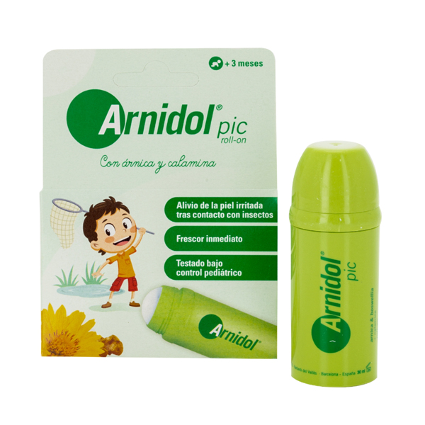 Arnidol Pic roll-on combina las flores de Árnica junto con otros 6 ingredientes activos naturales proporcionando una sensación refrescante inmediata.