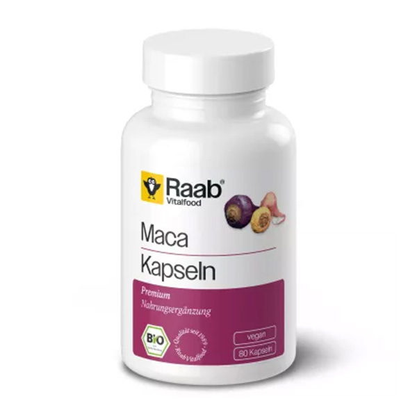 Complemento alimenticio con glucosinolatos de raíz de maca en polvo en forma de cápsulas. Por dosis diaria (= 5 cápsulas) 2 g de Maca en polvo, de los cuales 4 mg de glucosinolatos.