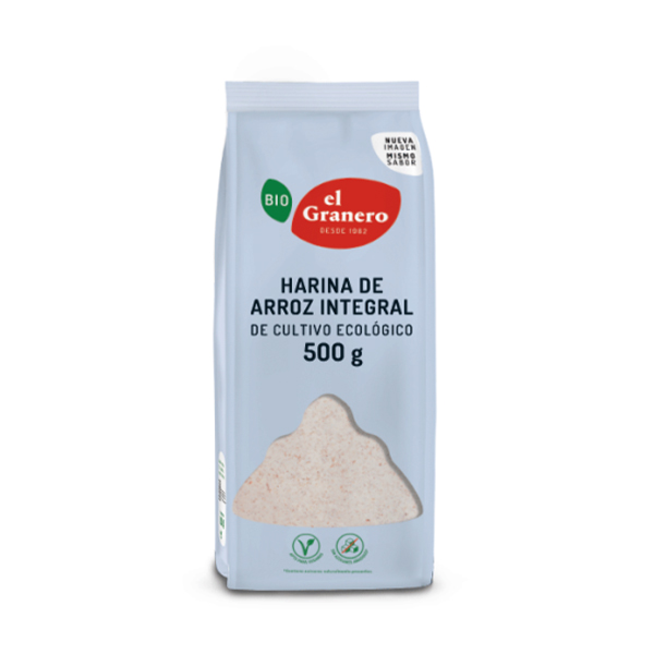 Harina de arroz integral*. Puede contener gluten, sésamo, soja y frutos secos.