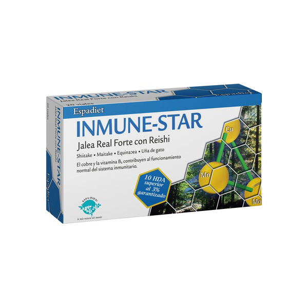 Agua, fructosa, Jalea real, zumo concentrado de Grosellero negro, extracto seco de Uña de gato (Uncaria tormentosa), extracto seco de Echinácea (Echinácea purpurea), Reishi, Shiitake, Maitake, gluconato de Manganeso, gluconato de Cobre, Molibdato de sodio y sorbato potásico (conservador).
