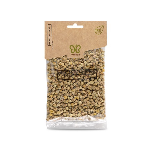 El Naturcid Manzanilla Mahon Eco Bolsa 60gr está compuesto únicamente por manzanilla mahón de cultivo ecológico. Este tipo de manzanilla se caracteriza por ser rica en flavonoides, que le confieren propiedades antiinflamatorias, antioxidantes y sedantes.