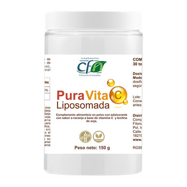 Pura Vita C Liposomada de CFN es un complemento alimenticio en polvo con agradable sabor a naranja, formulado a base de vitamina C y lecitina de soja. La vitamina C es un nutriente esencial con múltiples beneficios para el organismo: contribuye al funcionamiento normal del sistema inmunitario, protege a las células frente al daño oxidativo y favorece la formación de colágeno para el correcto mantenimiento de piel, huesos, cartílagos, encías y dientes.