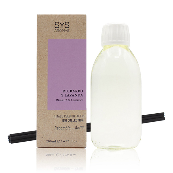 Nuestro Recambio Mikado Ruibarbo y Lavanda 200ml de la Colección 1991 de SYS Aromas combina la frescura cítrica del ruibarbo con la suavidad floral de la lavanda para llenar cualquier estancia de calma y equilibrio. Este ambientador mikado con aroma natural transforma tu hogar en un espacio de serenidad y bienestar.
