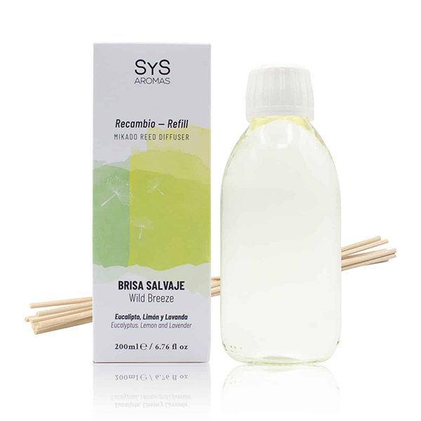 Nuestro Recambio Am bientador Mikado Brisa Salvaje llena tu hogar con su aroma fresco y revitalizante gracias al eucalipto, limón y lavanda.