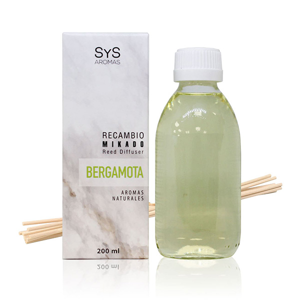 El Recambio Ambientador Mikado de Bergamota SYS destaca por sus notas cítricas y florales con toques frescos. Un aroma que aporta serenidad y alegría a cualquier espacio. Este recambio de ambientador Mikado SYS de la Colección Mármol, tiene 200ml y dura más de 4 semanas. Además de la fragancia, incluye un juego de varillas para poder sustituir a las anteriores. Este recambio es una excelente opción para gastar menos y además contribuir con la sostenibilidad medioambiental. El aroma de la Bergamota de destaca por su perfume cítrico con notas florales. Es suave y tiene un fondo semidulce. Su toque cítrico es frutal, fresco y diferente, a medio camino entre el de la naranja amarga y el limón. Es refrescante y picante, pero tiene un acorde más profundo y picante que otros como el limón y la naranja. La bergamota tiene una acidez que la convierte en una nota muy brillante y estimulante, y a la vez posee en sus notas volátiles un punto floral que evoca aromas especiados y únicos. En aromaterapia, el aroma de la Bergamota es el gran antidepresivo por excelencia y es un gran equilibrante que aporta serenidad, alegría y frescura. Es relajante, calma el sistema nervioso central. También regula la ansiedad, el decaimiento y la fatiga. En cualquier espacio, este aroma llena cualquier ambiente con una fragancia cítrica y refrescante. Sus notas cítricas y florales aportan frescura y alegría a la casa. El aroma de Bergamota aporta a los espacios buen humor, optimismo y sensación de felicidad.