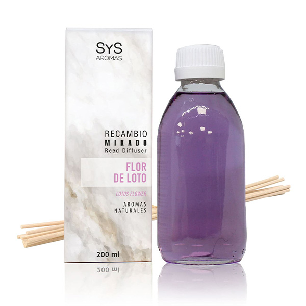 El Ambientador Mikado de Flor de Loto SYS destaca por sus notas afrutadas, frutales y orientales. Un aroma que aporta calma y relajación a cualquier espacio. Con sus notas acuáticas y florales, Flor de Loto es un delicado y sutil aroma que traslada a los jardines orientales de China y Japón. Este recambio de ambientador Mikado SYS de la Colección Mármol, tiene 200ml y dura más de 4 semanas. Además de la fragancia, incluye un juego de varillas para poder sustituir a las anteriores. Este recambio es una excelente opción para gastar menos y además contribuir con la sostenibilidad medioambiental. Este aroma suave, sensual y elegante, posee una marcada personalidad oriental que combina su delicada fragancia floral con notas afrutadas, dulces y empolvadas. La esencia aromática de la flor de loto aporta una suave fragancia con una mezcla de olores como los del benjuí o patchouli.