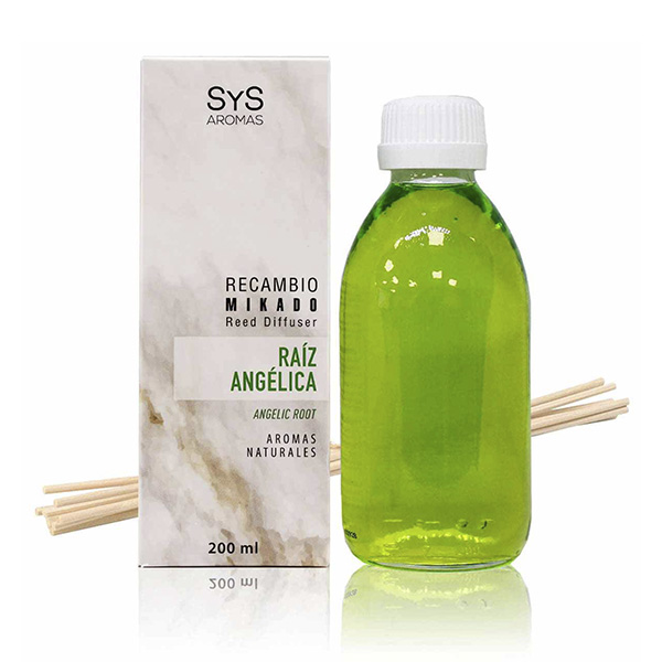 El Recambio Ambientador Mikado de Raíz Angélica SYS destaca por sus notas balsámicas, herbales y anisadas. Un aroma que aporta armonía y equilibrio a cualquier espacio. Este recambio de ambientador Mikado SYS de la Colección Mármol, tiene 200ml y dura más de 4 semanas. Además de la fragancia, incluye un juego de varillas para poder sustituir a las anteriores. Este recambio es una excelente opción para gastar menos y además contribuir con la sostenibilidad medioambiental. También conocida como Hierba de los Ángeles, la Raíz Angélica desprende un aroma intenso y refrescante que recuerda al anís, con un toque especiado y un inconfundible carácter herbal. Tiene grandes propiedades medicinales y beneficios para la salud.