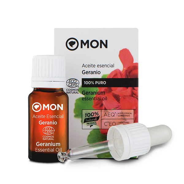 Con una nota olfativa media, el aceite esencial de Geranio tiene un olor fuerte, pero agradable a la vez. Por ser muy parecido al de la Rosa se utiliza mucho en perfumería imitándola. Su aroma ayuda a reducir el estrés, la ansiedad y los nervios. La esencia se obtiene por destilación al vapor de la planta y su principio activo predominante es el geraniol.sp;