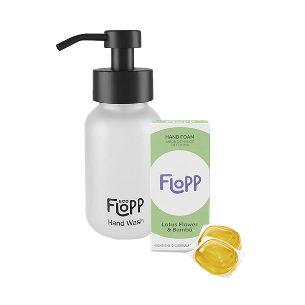 Incluye: 1 Botella Cristal 250ml con bomba espumadora + 1 Refill Lotus Flower & Bambú - 2 cápsulas.
