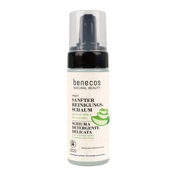 La espuma limpiadora suave limpia con suavidad las pieles normales. Elimina eficazmente el maquillaje, refresca e hidrata la piel con aloe vera ecológico y agua de lavanda.