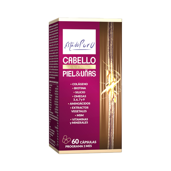 Dosis diaria (2 cápsulas) Complejo vitamínico 200 mg – Vitamina C 60 mg (75% VRN*) – Vitamina E 10 mg (83,3% VRN*) – Niacina 18 mg (112,5% VRN*) – Ácido pantoténico 6 mg (100% VRN*) – Vitamina B6 2 mg (142,8% VRN*) – Vitamina B1 1,4 mg (127,26% VRN*) – Vitamina B2 1,6 mg (114,28% VRN*) – Vitamina B12 1 μg (40% VRN*) – Ácido fólico 200 μg (100% VRN*) – D- Biotina 150 μg (300% VRN*) MSM (metilsulfonilmetano) 200 mg Puredia seaBerry® (polvo del fruto de Espino amarillo) 120 mg Ovomet® (extracto patentado de membrana de huevo) 100 mg L-metionina 80 mg Cistina 80 mg Zinc 10 mg (100% VRN*) L- arginina 41,34 mg Extracto seco del fruto de Arándano 50 mg Extracto seco de semillas de Mijo 40 mg Savia de Bambú en polvo 40 mg – Silicio 14 mg Extracto seco de bayas de Saw palmetto 40 mg *VRN: Valores de referencia de nutrientes.