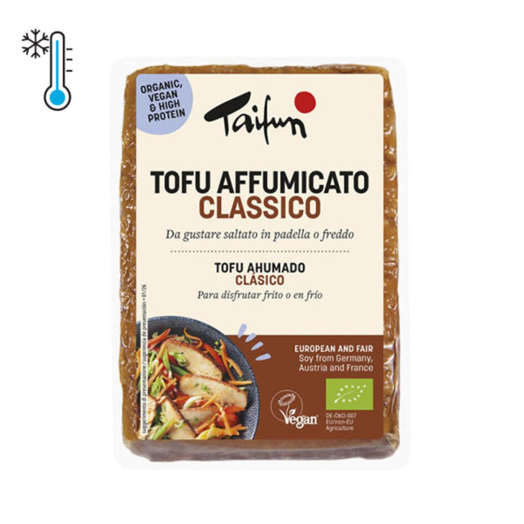 Tofu* 93% (habas de soja* 55%, agua, agentes coagulantes: cloruro de magnesio y sulfato de calcio), salsa de soja* (agua, habas de soja*, trigo*, sal marina), humo de madera de haya. Contiene soja y gluten.(*)=De cultivo ecológico.