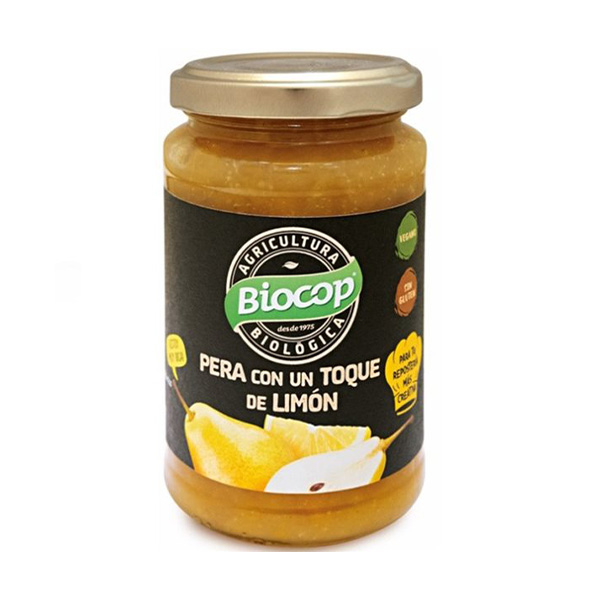 Pera* (112g de fruta por 100g de producto acabado) , azúcar de caña*, limón* (8%). (* de la agricultura ecológica)