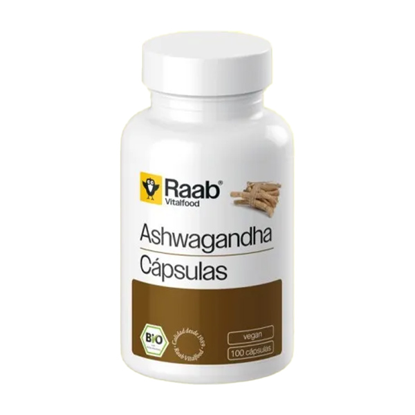 Ashwagandha Bio de Raab Vitalfood es un complemento en cápsulas elaborado con polvo puro de raíz de Withania somnifera, también conocida como ashwagandha o ginseng indio.
