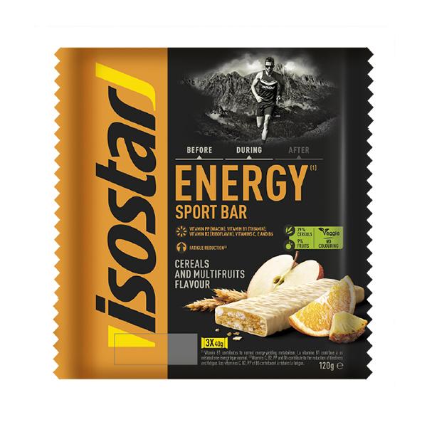 Las barritas deportivas Energy Isostar han sido especialmente compuestas para aportarte los nutrientes que acaban faltando en cualquier esfuerzo prolongado: los hidratos de carbono. El consumo de esta barrita de cereales, gracias a su aporte de hidratos de carbono, grasas, proteínas y vitaminas, potencia tu motivación y te aporta los nutrientes necesarios durante un esfuerzo de resistencia.