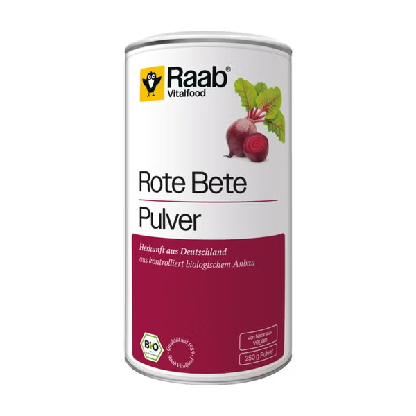 El polvo de remolacha orgánico de Raab es ideal para batidos rojos y jugos de vegetales, aderezos para ensaladas, sopas y mucho más. Para hacer un batido, mezcla aproximadamente 1 cucharada colmada (14 g) del polvo en 500 ml de líquido. El polvo también es adecuado para colorear pastas, pasteles o masas de pizza. Consuma 14 g de polvo al día para beneficiarse de los efectos anteriores.