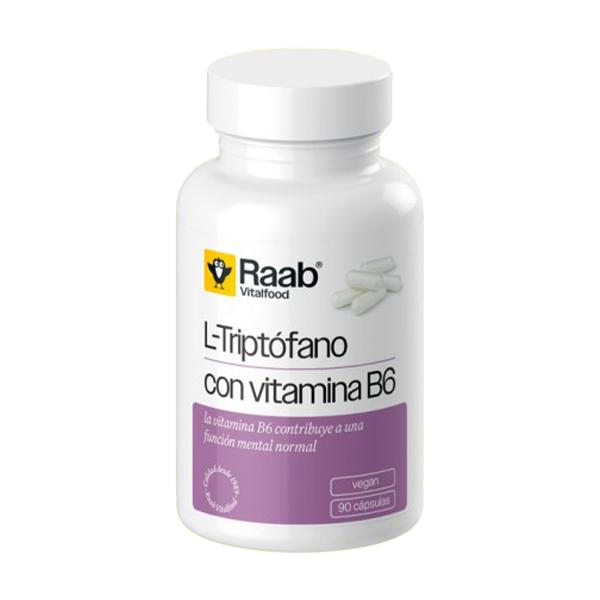 L-Triptófano con Vitamina B6 de Raab Vitalfood es un complemento en cápsulas que combina el aminoácido esencial L-triptófano con la forma bioactiva de la vitamina B6: piridoxal-5'-fosfato (P5P).