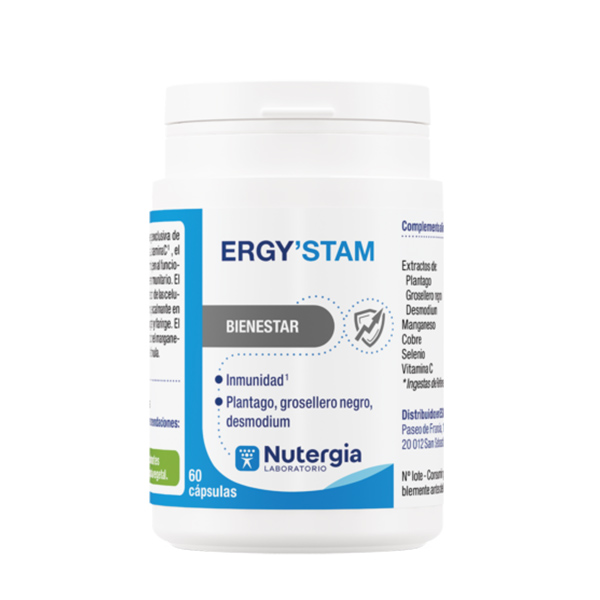 ERGY’STAM es una sinergia exclusiva de plantas y oligoelementos. La vitamina C 1, el cobre 1 y el plantago 1 contribuyen al funcionamiento normal del sistema inmunitario. El plantago es calmante en casos de irritación de garganta y faringe, y favorece la protección de las celulas frente al daño oxidativo. El grosellero negro, el desmodium, el manganeso y el selenio completan la fórmula.